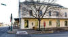 features a truncated roof, corner entry, ornate frieze below the